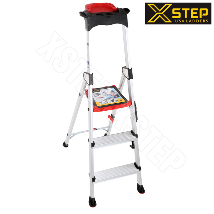Thang nhôm ghế Xstep XL-03 được nghiên cứu tỉ mỉ trong từng bộ phận của sản phẩm. Là dòng thang mới mẻ với rất nhiều tính năng độc đáo và chiều cao thích hợp cho các công việc tại gia đình. Thiết kế 3 bậc thang kèm theo tay vịn vững vàng để người dùng có thể leo trèo một cách an tâm mà sử dụng. Hệ thống bậc thang bản lớn và được cố định vào khung thang một cách chắc chắn có thể chịu được tải trọng lên tới 150kg. Đặc biệt tay vịn có thêm khay đựng dụng cụ có thể chứa được rất nhiều công cụ để các công việc trên cao trở nên đơn giản và nhẹ nhàng hơn. Đặc biệt bậc trên cùng làm bằng nhựa cao cấp với bản bậc lớn để những người có tuổi hay chị em phụ nữ dễ dàng đứng trên đó một cách an tâm nhất.