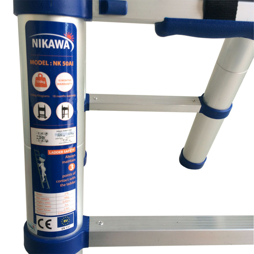 Thang nhôm Nikawa NK-50AI là mẫu thang rút gọn cao cấp của thương hiệu Nikawa được sản xuất theo công nghệ tiên tiến hàng đầu của Nhật Bản. Sản phẩm cung cấp chiều cao sử dụng chữ A là 2.5m và cũng có thể duỗi thẳng dài ra với kích thước lên tới 5m để các công việc trên cao của bạn có thể thực hiện một cách đơn giản nhất. Chất lượng cao cấp cùng giá thành hợp lý đã giúp cho sản phẩm đến với người tiêu dùng và được yêu chuộng sử dụng vào thời điểm hiện tại.