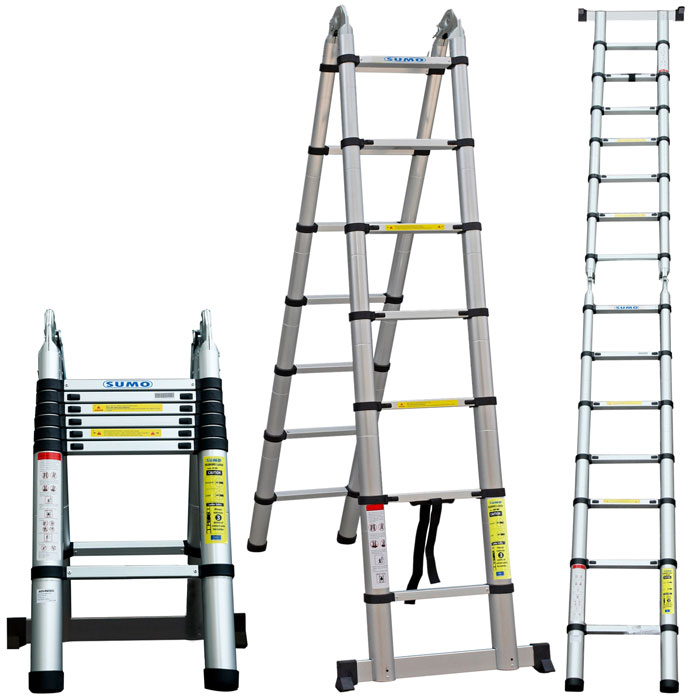 Thang nhôm ngày nay đã trở thành vật rất hữu dụng cho cuộc sống, mang lại nhiều tiện ích và sử dụng hiệu quả hơn các loại thang cổ điển như thang tre, thang sắt, thang gỗ. Với tính đa năng mà chiếc thang nhôm Sumo ADT608B đang sở hữu chắc chắn bạn sẽ kinh ngạc khi đã có trong ngôi nhà mình một chiếc thang vừa chắc chắn lại rất tiện lợi. Với thiết kế dạng chữ A thu gọn và kéo dài để bạn có thể vươn tới chiều cao sử dụng một cách dễ dàng nhất. Thang rút gọn chữ A dược gọi là thang đa năng bởi vì quy cách sử dụng rất linh hoạt, thang có thẻ biến đổi nhiều cấu hình sử dụng khác nhau cung cấp nhiều dạng với chiều cao khác nhau đáp ứng cho công việc leo trèo bạn đang cần.
